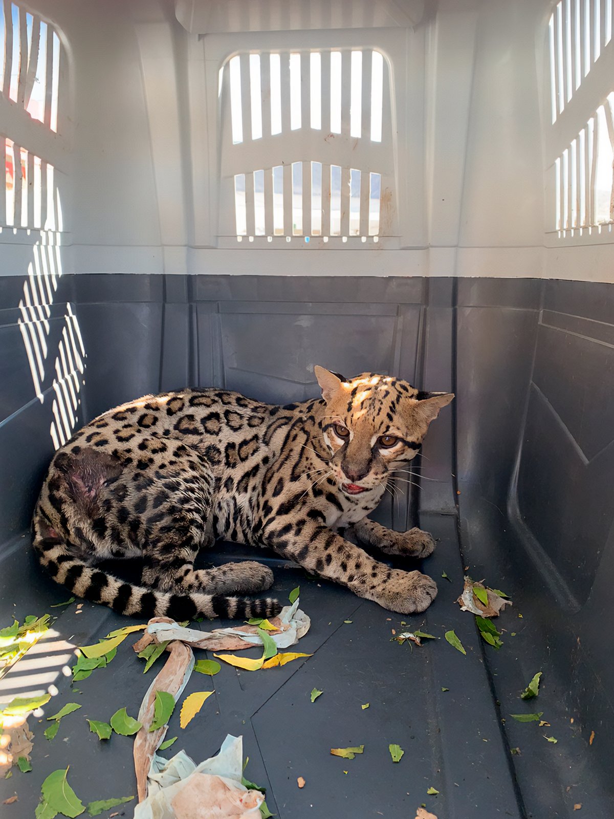 JUCHITÁN, Oax., a 05 de marzo de 2026.- Un ocelote herido, presuntamente tras ser atropellado por un vehículo, fue rescatado en el municipio de Juchitán por personal de la Procuraduría Federal de Protección al Ambiente (Profepa), que ya coordina su atención médica especializada.