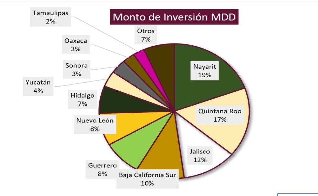 CANCÚN, QRoo, a 03 de enero de 2026.- La Secretaría de Turismo de México (Sectur) dio a conocer que las entidades federativas con mayor inversión turística proyectada al cierre de 2025 son Nayarit, con 19% del total nacional; Quintana Roo, con 17%; Jalisco, con 12%; Baja California Sur, con 10%, y Guerrero y Nuevo León, con 8 por ciento.