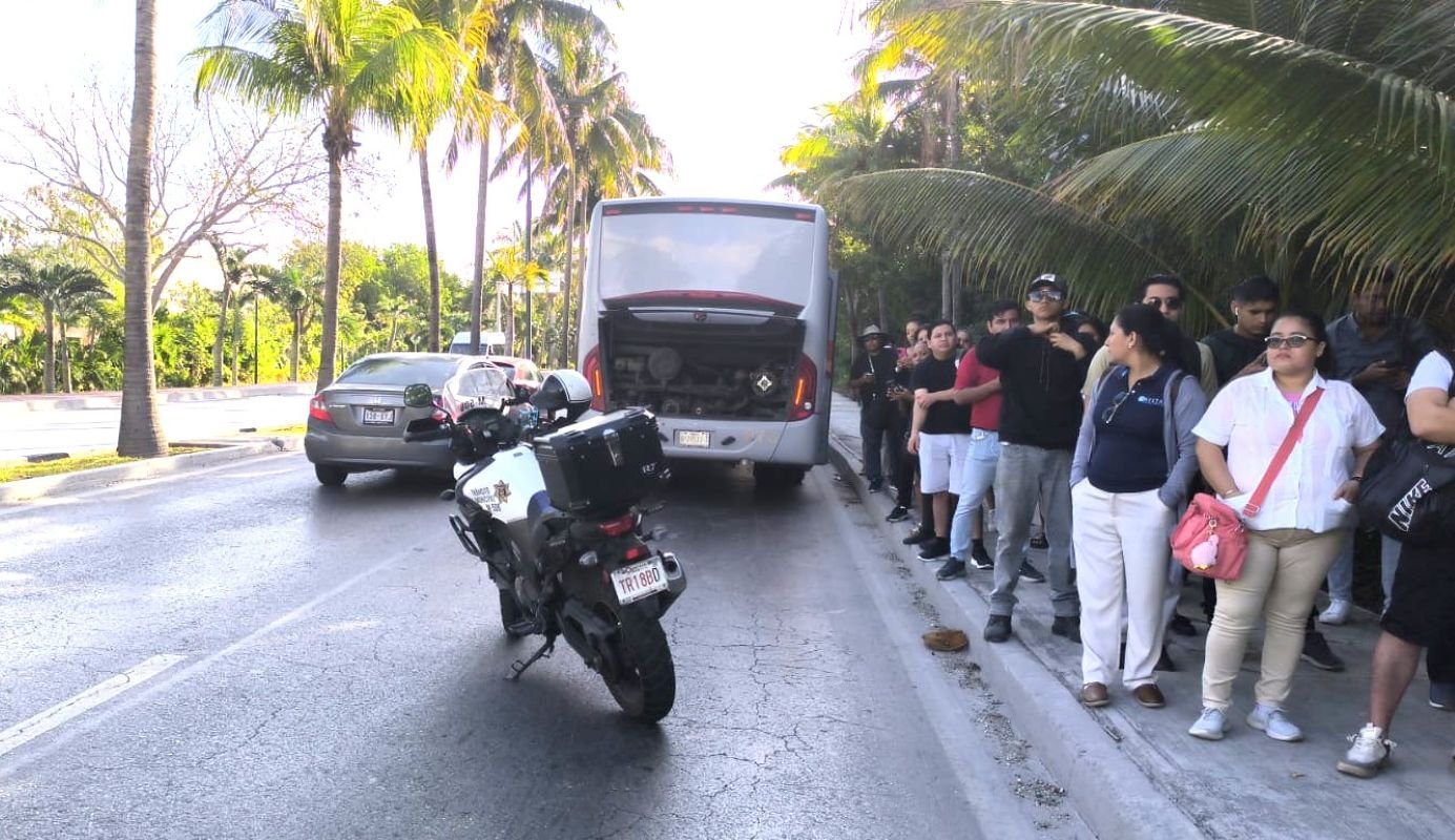 El autobús tuvo la falla mecánica al circular en el kilómetro 1.5 del bulevar Kukulcán, en el carril derecho, en el sentido hacia el Centro de Convenciones, lo que originó complicaciones en la circulación vehicular en el horario de mayor movimiento por la entrada de los miles de trabajadores de la zona hotelera.