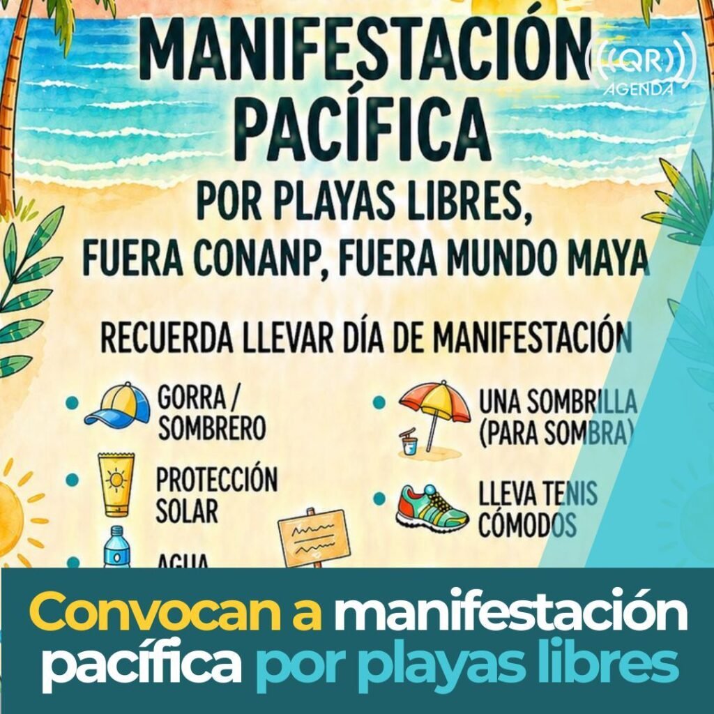 CANCÚN, QRoo, 27 de abril de 2026.- Para el próximo domingo 3 de mayo, habitantes y prestadores de servicios de Tulum prevén manifestarse en la Glorieta de las Ruinas, para plantear inquietudes relacionadas con el acceso a playas y la operación del Parque del Jaguar.