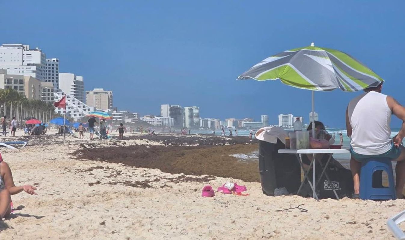 El funcionario explicó que en los últimos días se ha registrado recale de la macroalga principalmente en Playa Marlín, Playa Ballenas y Playa Delfines, donde personal municipal mantiene labores de limpieza para retirar el material.