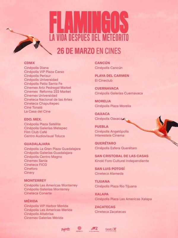 CANCÚN, QRoo, 25 de marzo de 2026.- La Comisión Nacional de Áreas Naturales Protegidas (Conanp) anunció el estreno del documental “Flamingos, la vida después del meteorito”, dirigido por el cineasta Lorenzo Hagerman, narrado por Julieta Venegas y musicalizado por el compositor Bryce Dessner, en una coproducción de La Vaca Independiente, Cornell Lab of Ornithology y Cactus Film & Video, una de las organizaciones científicas especializadas en el conocimiento y conservación de las aves.
