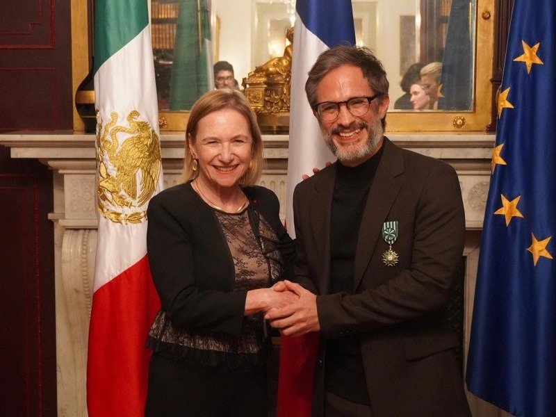 La condecoración fue entregada en un acto oficial por Delphine Borione, embajadora de Francia en México, en representación del gobierno francés, como reconocimiento a la trayectoria cinematográfica del actor y a su impacto sostenido en el cine contemporáneo.