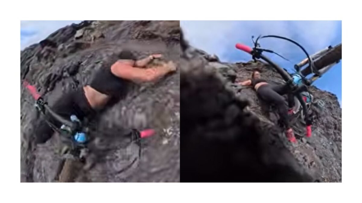 En las imágenes difundidas en plataformas digitales se observa cómo Sopeña circula por un camino estrecho con piedras y grava suelta, lo que provoca que la bicicleta derrape repentinamente. La influencer cae y se desliza por el terreno inclinado hasta quedar a pocos centímetros del borde del acantilado. En un momento de tensión, logra sujetarse de una roca para evitar caer al vacío.