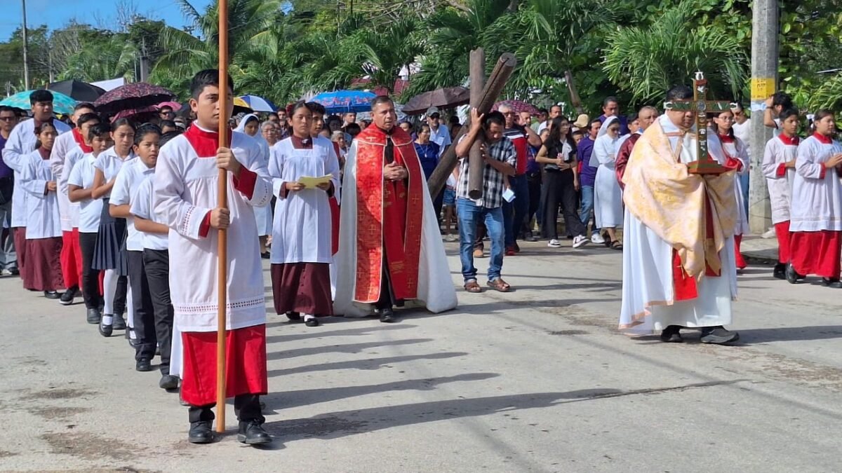 FELIPE CARRILLO PUERTO, Q. Roo, a 3 de abril de 2026.– Con la participación de más de 2 mil fieles católicos, dio inicio el Viacrucis en la zona maya de Quintana Roo, donde la comunidad refrenda su fe cristiana en una de las tradiciones más representativas de la Semana Santa.