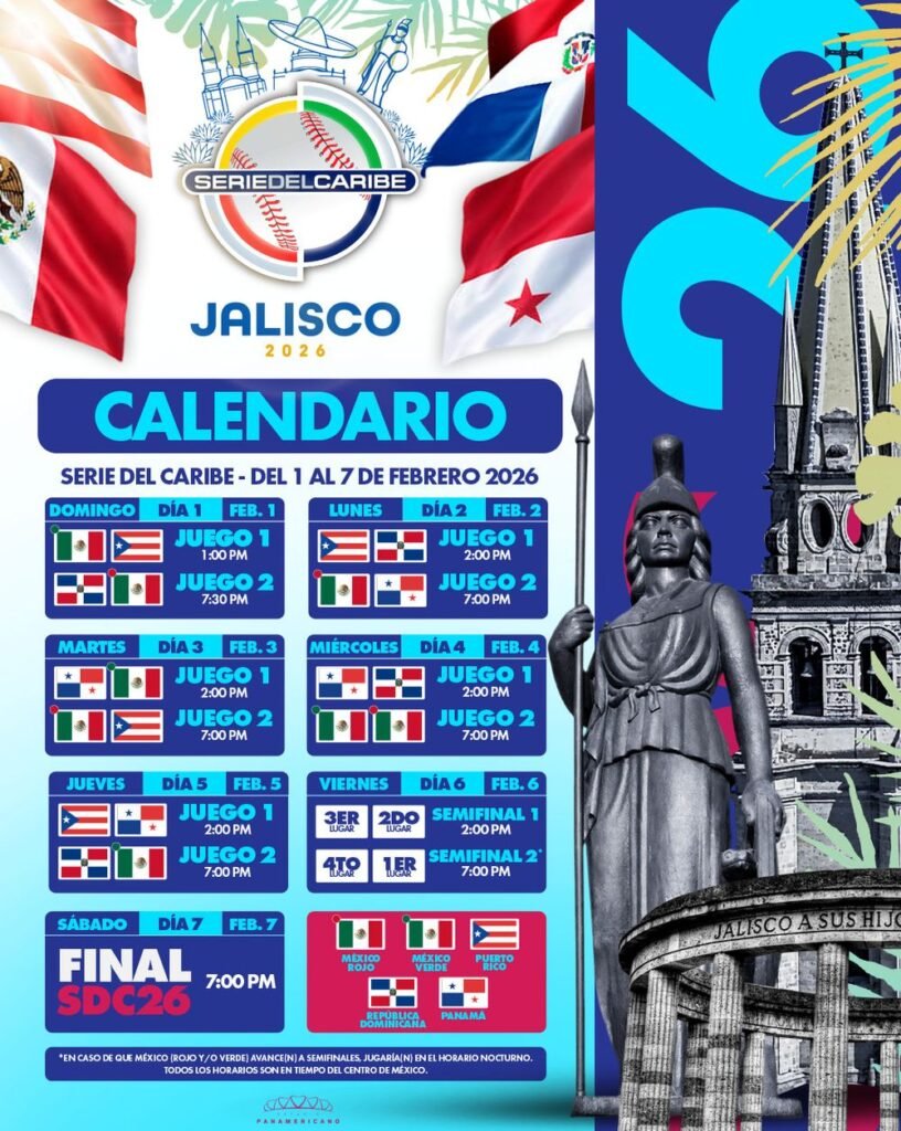 La Final de la Serie del Caribe Jalisco 2026 se celebrará el sábado 7 de febrero, a las 7:00 de la noche, entre los ganadores de las semifinales.
