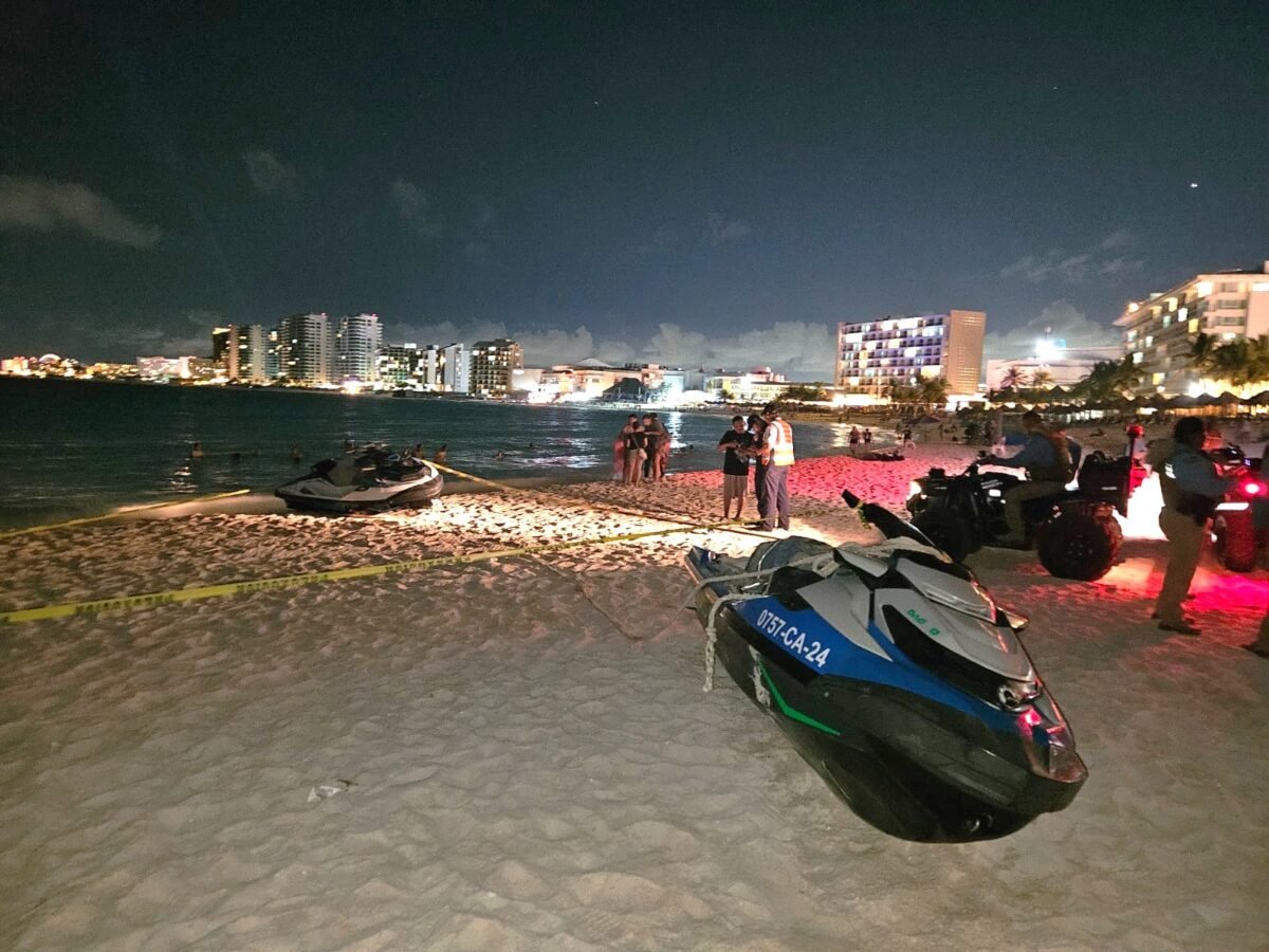 CANCÚN, QRoo, 27 de abril de 2026.— Una moto acuática embistió a cinco bañistas, entre ellos una menor de edad, en la zona de Playa Forum, en Cancún, luego de que el conductor de la unidad realizara una maniobra imprudente cerca de la orilla del mar.