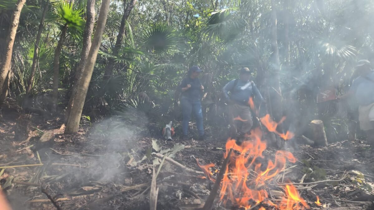 El segundo punto afectado se ubica en El Acahual / El Sendero, donde el incendio inició el 29 de marzo. En este caso, la superficie preliminar dañada asciende a 16 hectáreas, lo que lo convierte en el siniestro de mayor dimensión de los dos reportados en Quintana Roo.