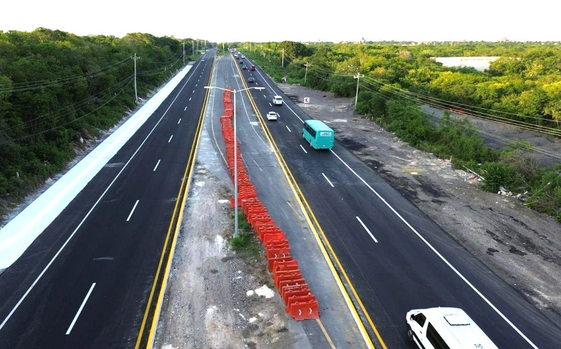 Cancún, QRoo, a 22 de diciembre de 2025.- La Secretaría de Infraestructura, Comunicaciones y Transportes (SICT) concluyó por fin los trabajos de reparación del socavón en la carretera federal 307, entre Playa del Carmen y Puerto Morelos.